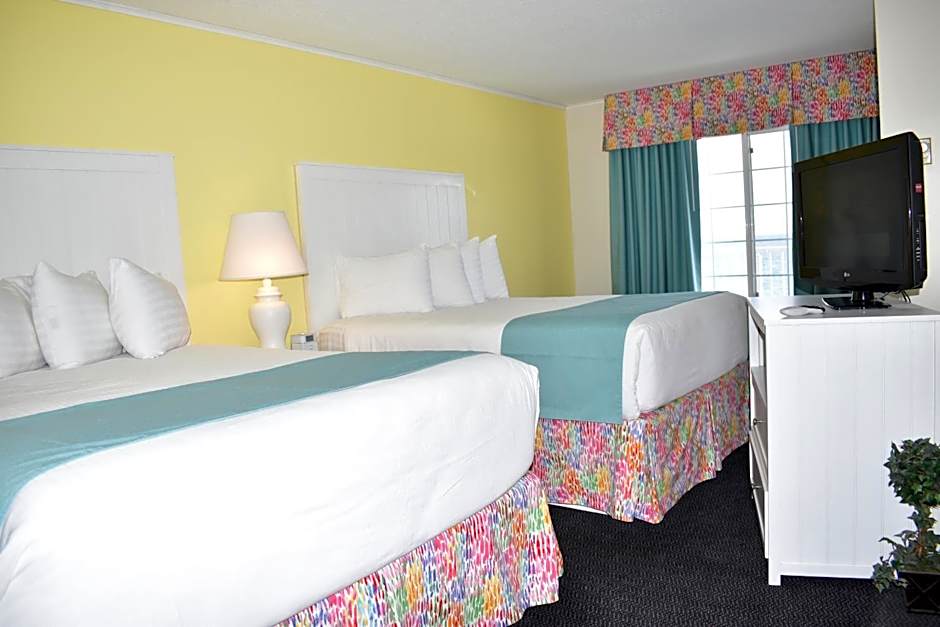 This queen room features a tea/coffee maker, air conditioning and microwave. There is a partial lake view.