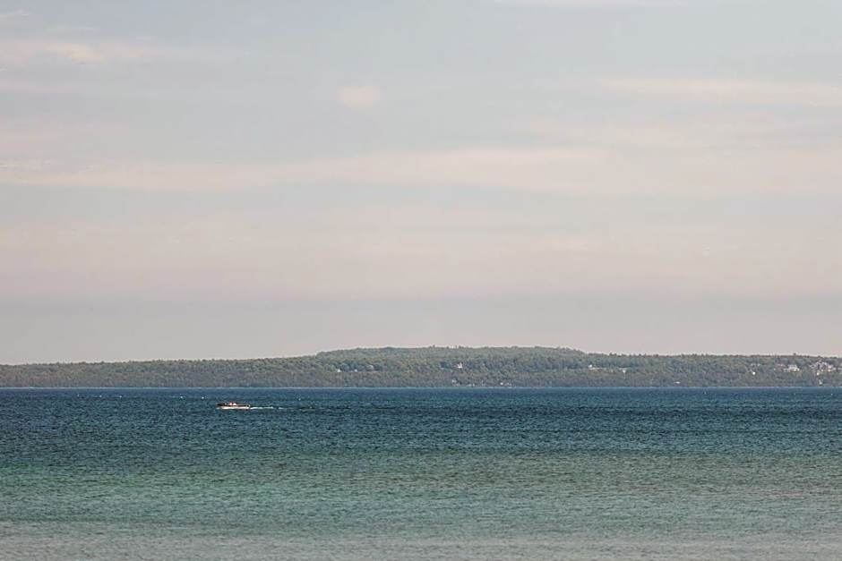 This Queen Room with a fireplace features lakefront views from the balcony.