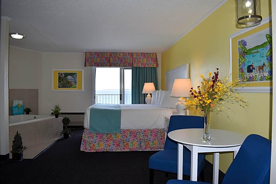 This king room has a two-person spa bath and a partial island view from the balcony or patio.